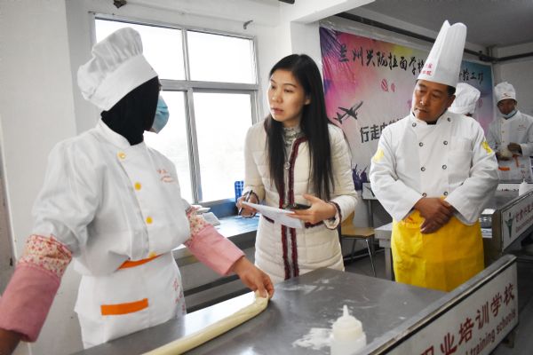 在甘肃省商务厅举办的临夏扶贫精品班课堂上,调研组积极和学员们畅谈,了解他们的家庭收入情况,学习拉面技术的初衷及愿景。