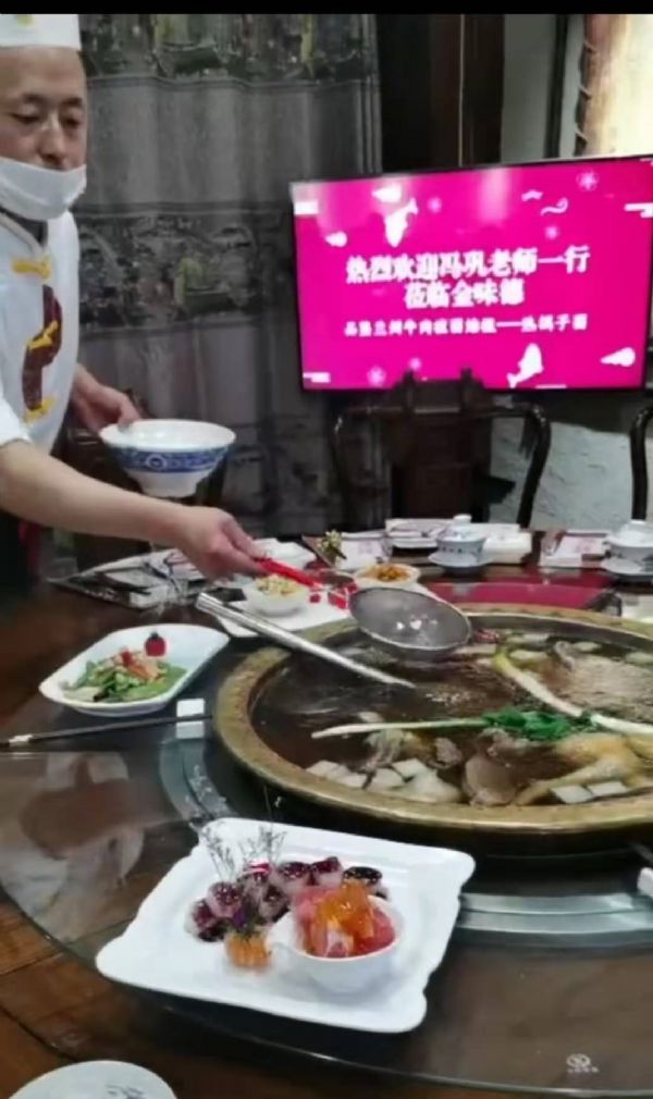 2020年11月28日中午,冯巩老师、贾旭明老师等一行莅临兰州牛肉拉面体验工坊,在著名军旅词作家倪永盛、兰州黄河生态旅游开发集团有限公司董事长张永才、甘肃省演出行业协会会长伏辉、兰州牛肉拉面国际联盟主席、甘肃金味德拉面文化产业集团董事长等领导陪同下,品鉴了被中国烹饪协会命名的中国西部名宴、敦煌国际文博会评选的一带一路特色名宴,以兰州牛肉拉面为龙头的小吃宴------热锅子全牦牛宴。