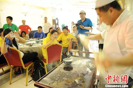 56岁的王昕是兰州人,30多年前移民日本,现在是日本甘肃同乡会名誉会长。“此次是受同乡会侨胞所托,寻访兰州牛肉面秘方和推广人才。”8日,他在兰州接受中新社记者采访时说,日本甘肃同乡会上百名侨胞计划“众筹”将正宗兰州牛肉面和其饮食文化故事带到日本的每个中华料理店。
