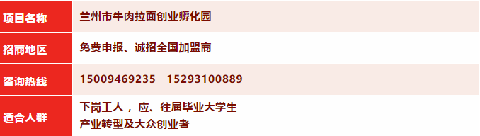 兰州牛肉拉面创业孵化园由兰州市城关区商务局授牌,兰州市科技局认定的兰州特色产业创业孵化园,运行三年多以来、扶持全国众多以兰州牛肉拉面创业的人士成功创业,积累了一定的成功经验,受2020疫情影响,金味德集团积极承担社会责任、助力中国经济发展,特推出免费扶持创业项目。