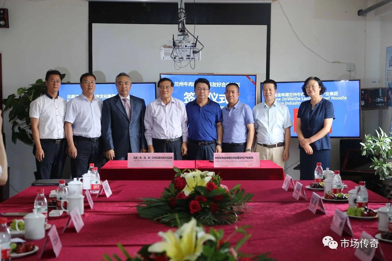 美国加州阿拉罕布拉市市长沈时康,北京板客时代科技有限公司董事长毕准,美中城市友好促进会会长应持荣,美中城市友好促进会秘书长陈彪,美国丝桥资本高级副总裁李石,美国丝桥资本投资总监张大龙,美国华人总商会副秘书长胡燕,中国烹饪协会、甘肃省商务厅、甘肃省人社厅、甘肃省港澳办、兰州牛肉拉面行业协会、金味德集团等相关领导和嘉宾在金味德兰州牛肉拉面文化产业园参加了签约仪式。