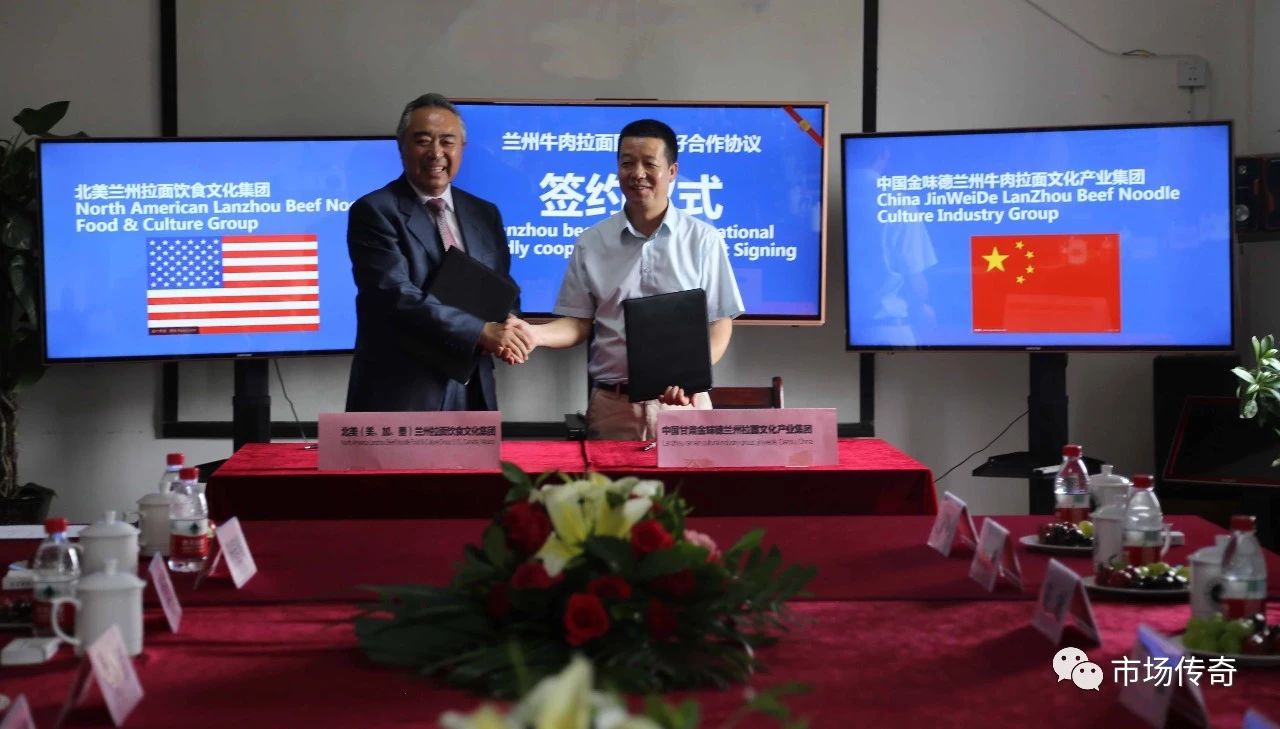 同兰州金味德牛肉面文化产业集团董事长梁顺俭签订意向性合作协议。根据协议,计划近期在美国、加拿大、墨西哥等三国各开设一家兰州金味德牛肉面分店。未来将开设百家分店,把兰州牛肉面餐饮及文化传播出去。