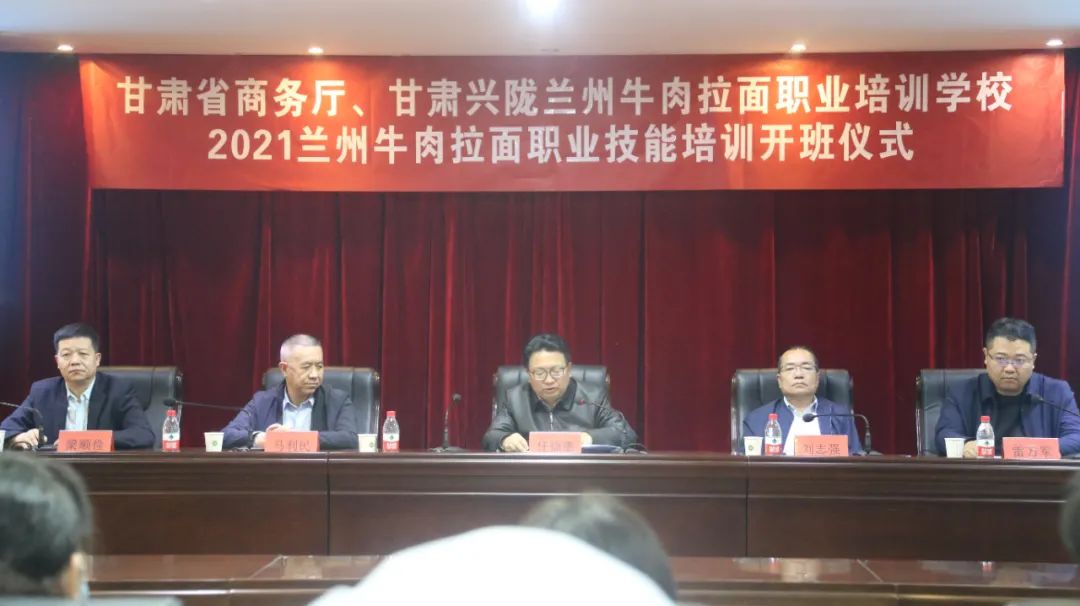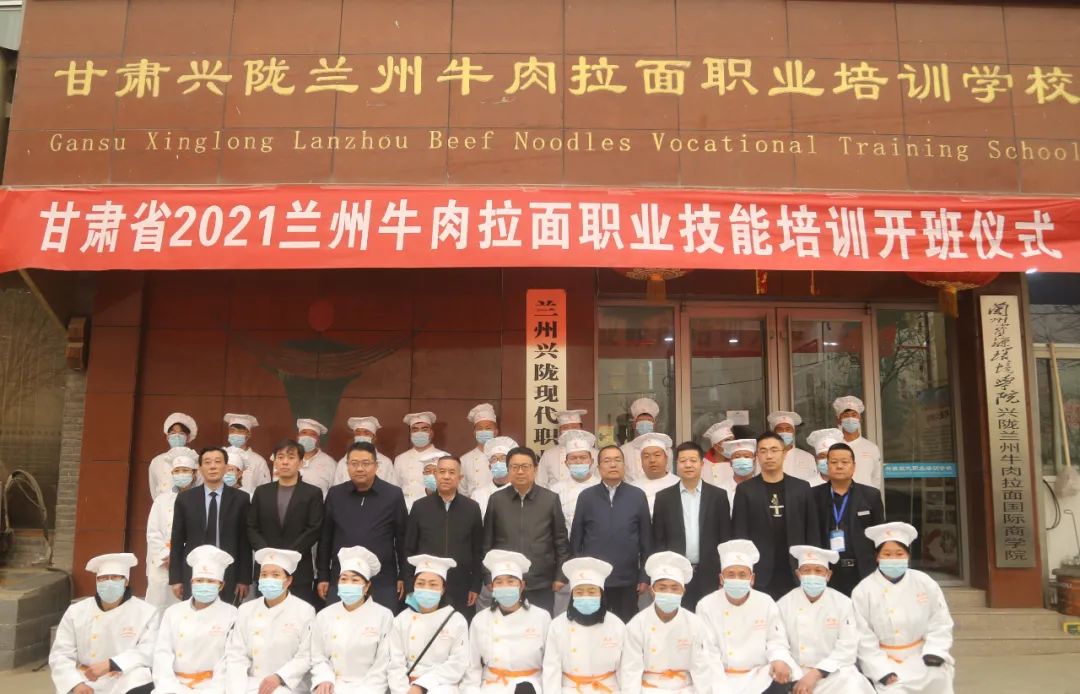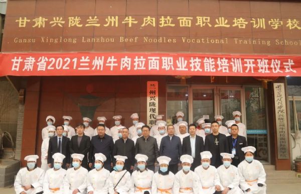 2021年3月16日,甘肃省2021年兰州牛肉拉面职业技能培训开班仪式在甘肃兴陇兰州牛肉拉面职业培训学校正式启动。
