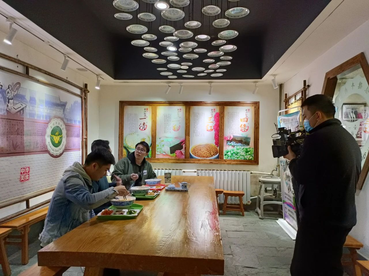 央视直播组来到中国兰州牛肉拉面体验工坊直播兰州牛肉拉面文化。