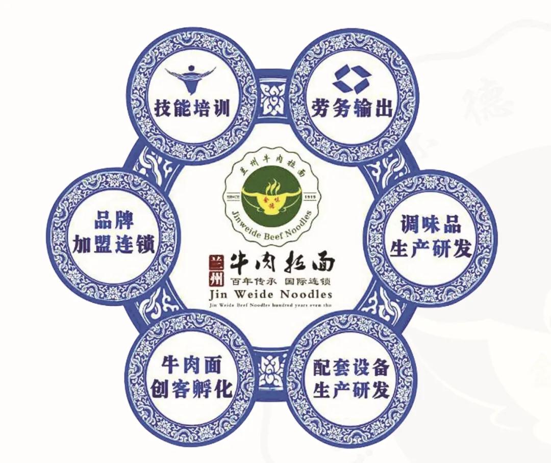 集团以兰州牛肉拉面产业为主,集兰州牛肉拉面文化传播、新产品研发、调味品生产、销售、技术培训、人才输出为一体,在世界50多个国家注册“金味德”牛肉拉面商标。