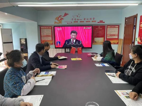 认真学习了习近平同志高举中国特色社会主义伟大旗帜,全面贯彻新时代中国特色社会主义思想,弘扬伟大建党精神,自信自强、守正创新,踔厉奋发、勇毅前行,为全面建设社会主义现代化国家、全面推进中华民族伟大复兴而团结奋斗的报告。报告是开启新征程的纲领性文献,饱含鲜明宣示的前进引领,奋斗召唤。大家全神贯注,认真笔记,秩序井然。