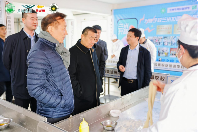 2023年12月12日,世界中餐业联合会会长邢颖、副会长兼面食产业分会主席牛余新一行在兰州调研考察兰州拉面产业。