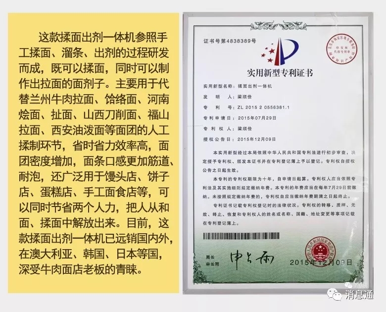 目前,这款揉面出剂一体机已远销国内外,在澳大利亚、韩国、日本等国,深受牛肉面店老板的青睐。